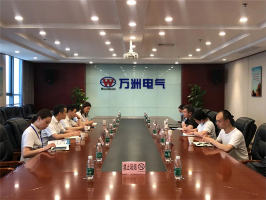惠風和暢,萬里無云。5月25日下午,湖北文理學院理工學院副院長汪波帶領電信系主任、專業老師到萬洲電氣開展企校合作交流洽談,萬洲電氣董事長、總經理趙世運參加座談交流。