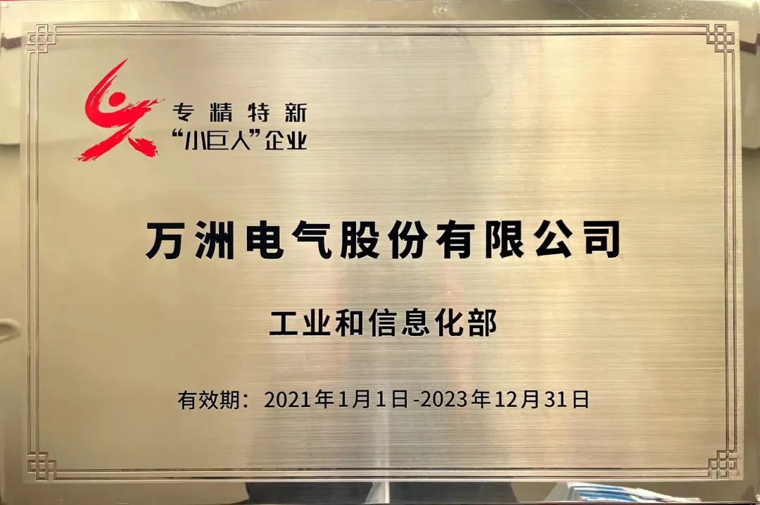 日前,國(guó)家工信部為國(guó)家級(jí)專精特新“小巨人”企業(yè)頒發(fā)獎(jiǎng)牌,萬洲電氣被授牌。