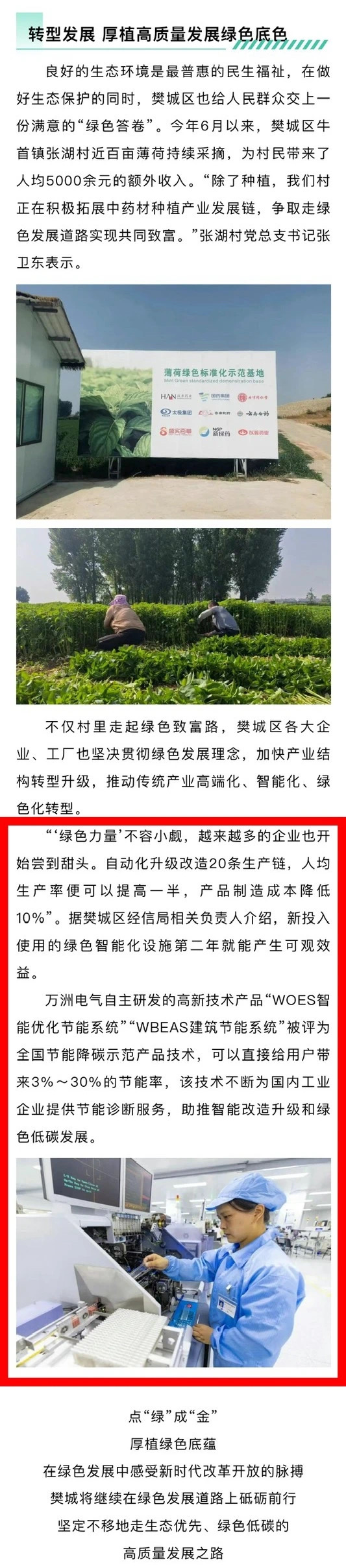 “‘綠色力量’不容小覷,越來越多的企業(yè)也開始嘗到甜頭。自動化升級改造20條生產鏈,人均生產率便可以提高一半,產品制造成本降低10%”。據(jù)樊城區(qū)經信局相關負責人介紹,新投入使用的綠色智能化設施第二年就能產生可觀效益。