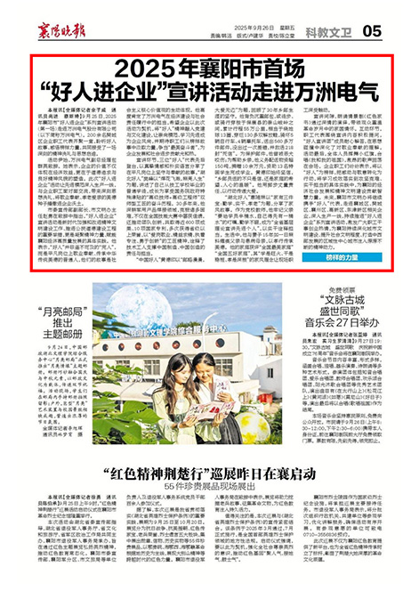 【襄陽(yáng)晚報(bào)】2025年襄陽(yáng)市首場(chǎng)“好人進(jìn)企業(yè)”宣講活動(dòng)走進(jìn)萬(wàn)洲電氣