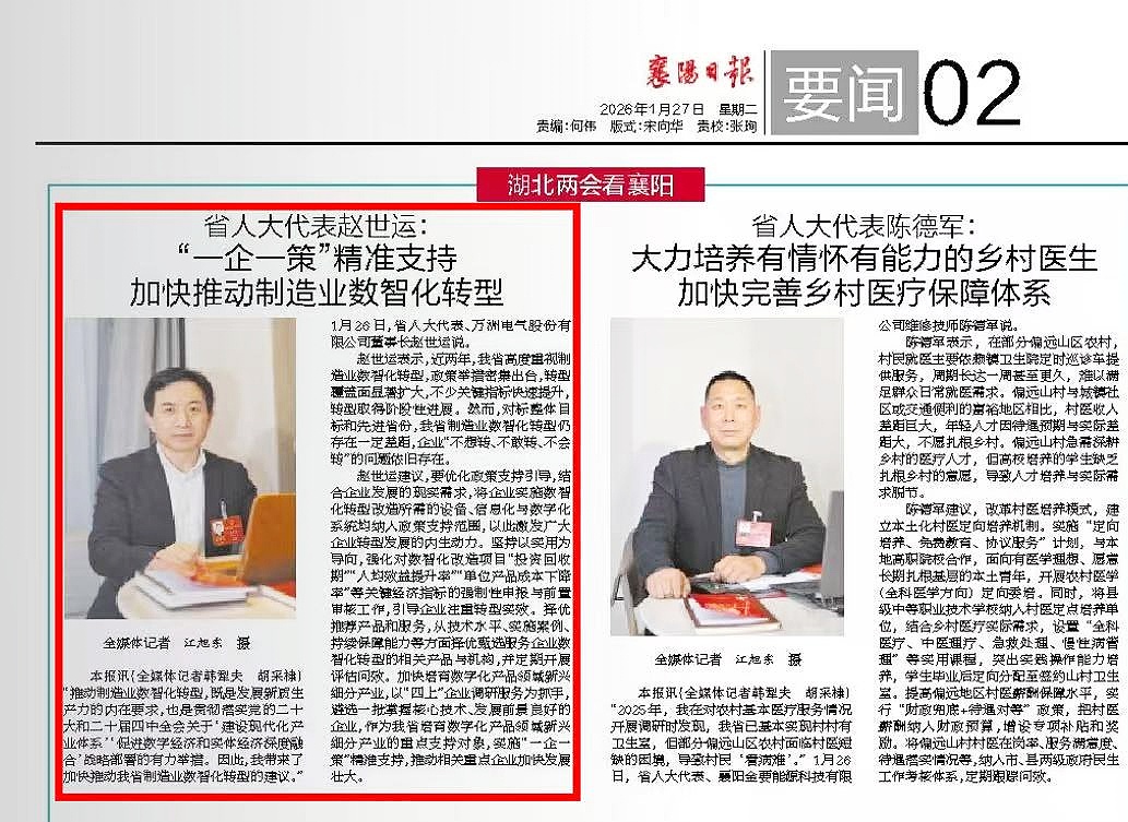 【襄陽日報】湖北兩會看襄陽——省人大代表趙世運:“一企一策”精準支持 加快推動制造業數智化轉型