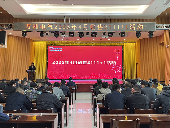 春啟華章,標桿領航。3月31日,萬洲電氣在1樓多功能廳開展4月銷售2111+1活動,總結一季度市場業績,獎勵銷售精英。萬洲電氣董事長、總經理趙世運、萬洲電氣副總經理李明輝出席會議。