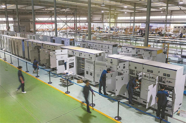5月23日,在萬洲電氣生產(chǎn)車間,工人們加班加點趕訂單,全力沖刺“雙過半”。