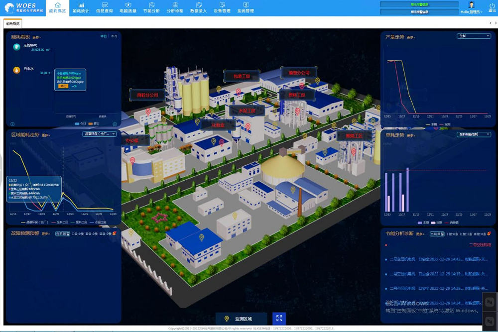 山西某建材有限公司WOES智能優化節能系統監測能源種類為電力、水和壓縮空氣,共計167個監測點,其中電力監測點146個、水監測點14個、壓縮空氣監測點7個,涵蓋生料、燒成、制成、包裝等工段。項目主要建設內容如下: