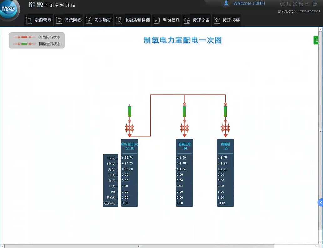 1、實時監測負荷,及時調整生產。系統上線運行后實現了實時查看各線路和設備的負荷情況,可以根據負荷情況和限電情況進行調整生產,也可以及時發現過負荷現象。